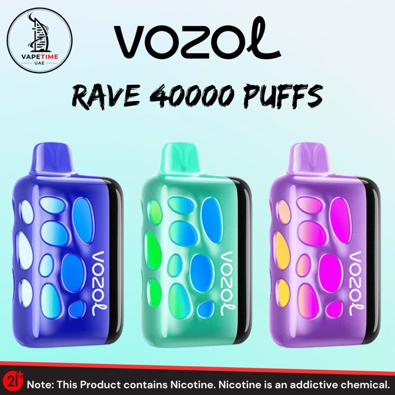 Vozol Rave 40000 Puffs at Vape Time UAE. Enjoy up to 40000 puffs, bold flavors, a rechargeable battery, and sleek design. Order for fast delivery.